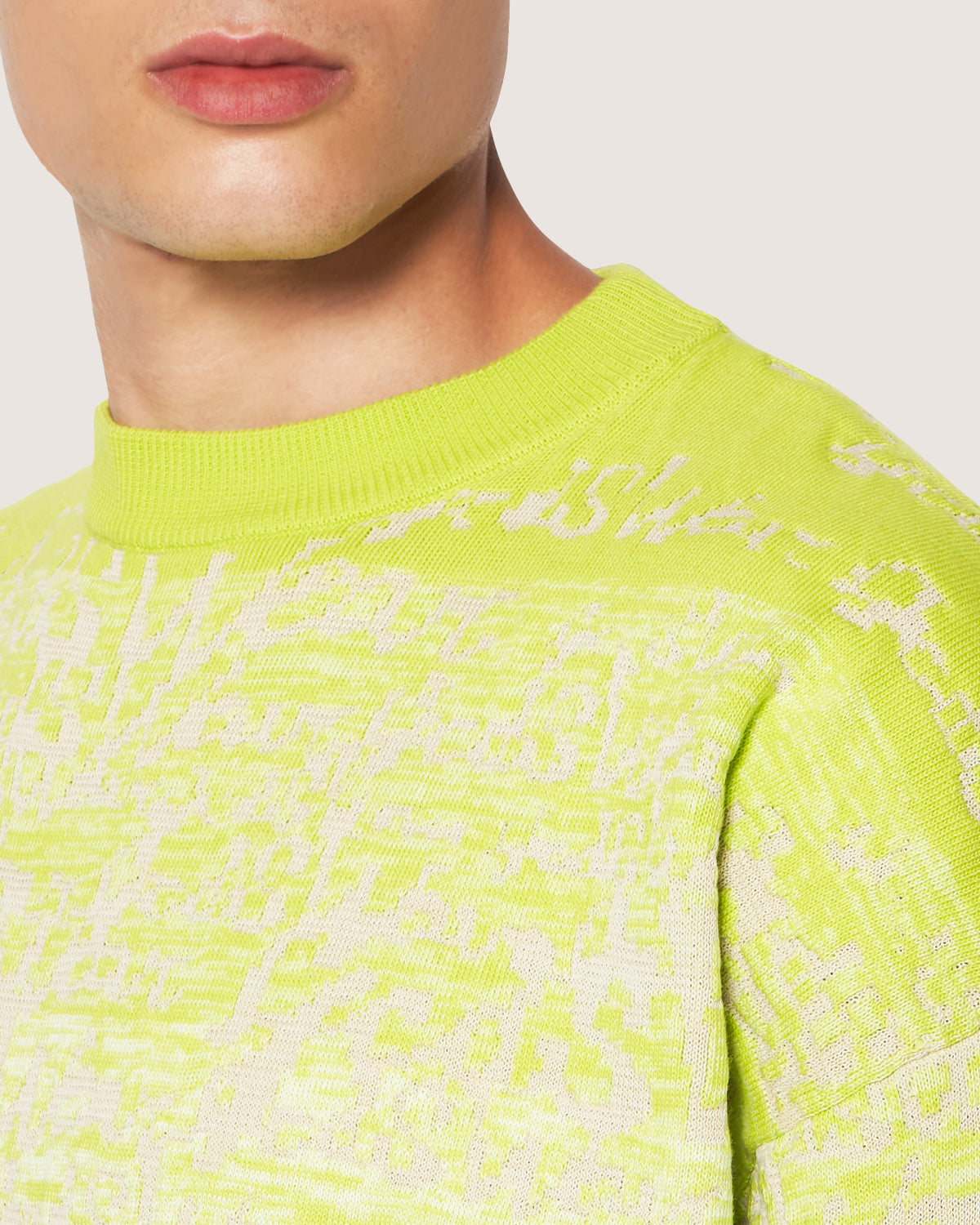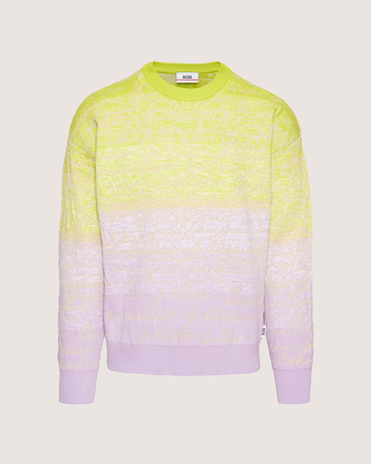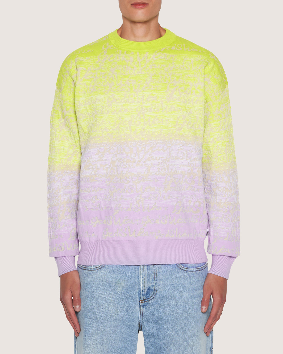 Long sleeve cotton sweater with degradè logo pattern.