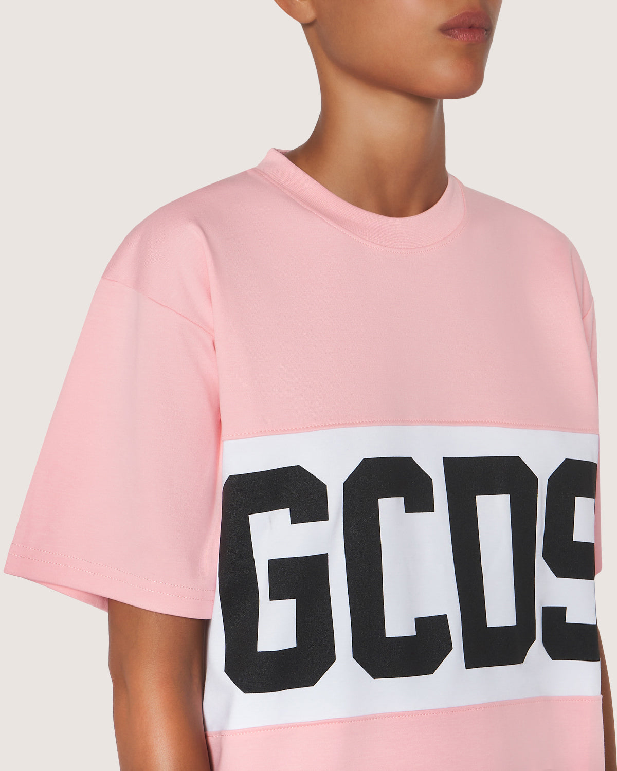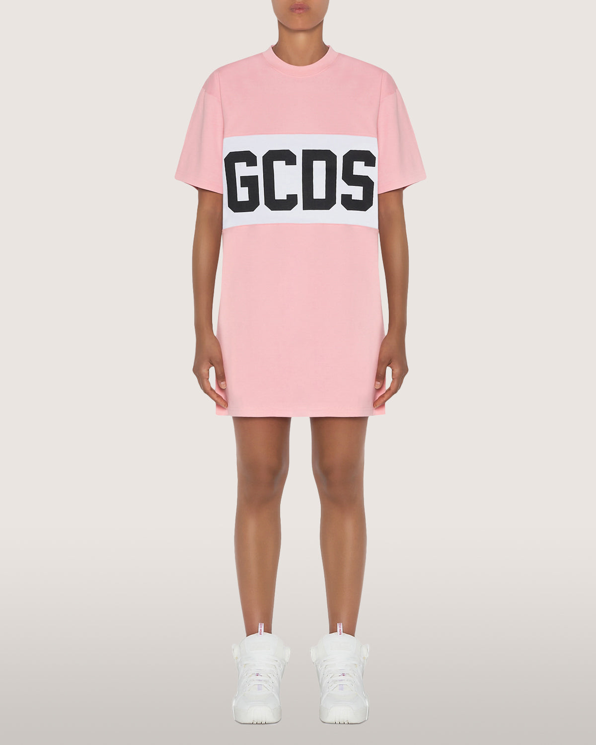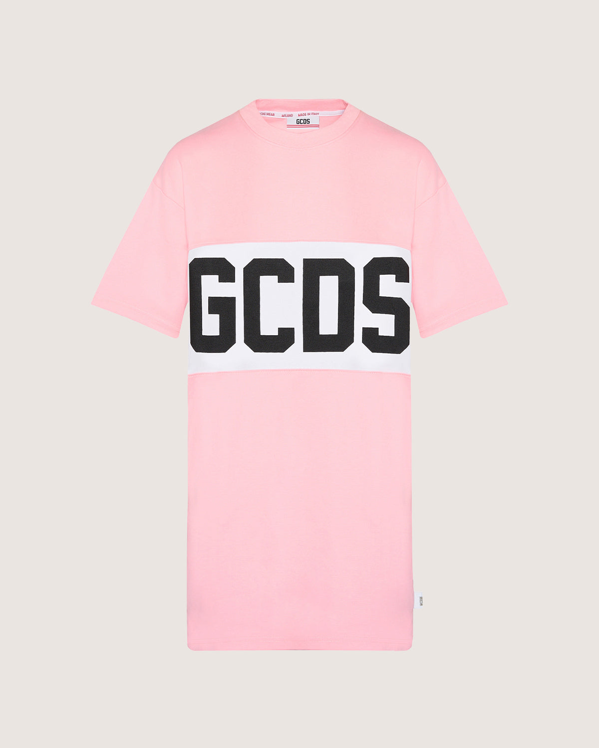 Oversized cotton dress with a GCDS logo band inlaid with contrasting inlays at breast height on front and back.