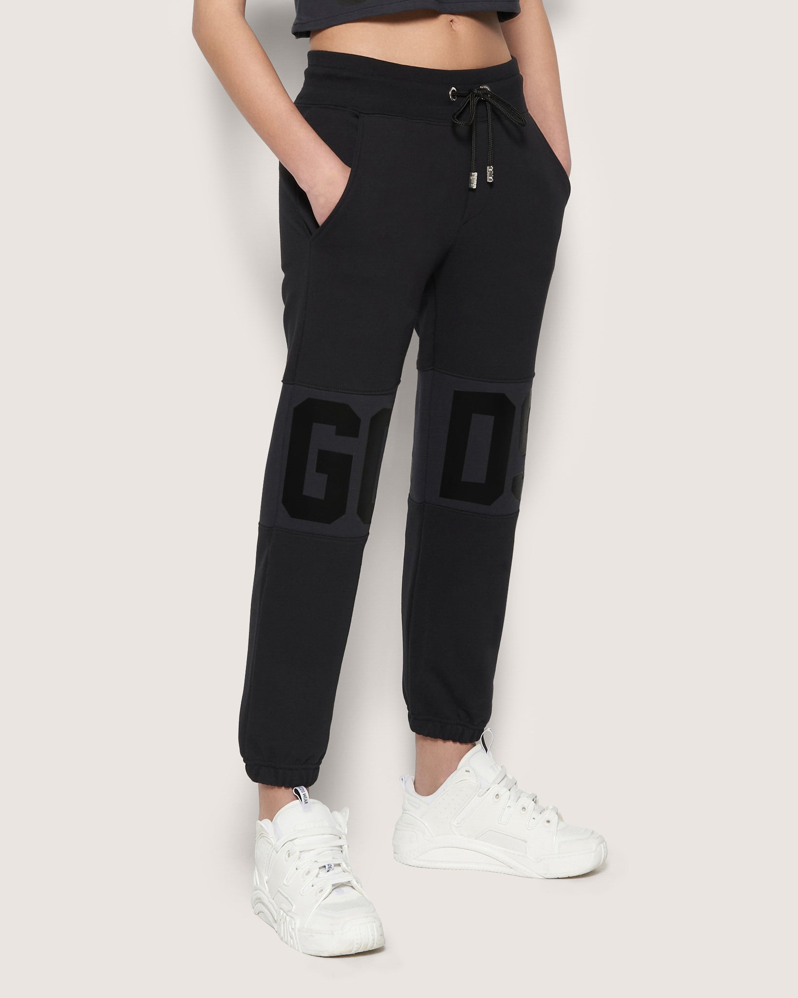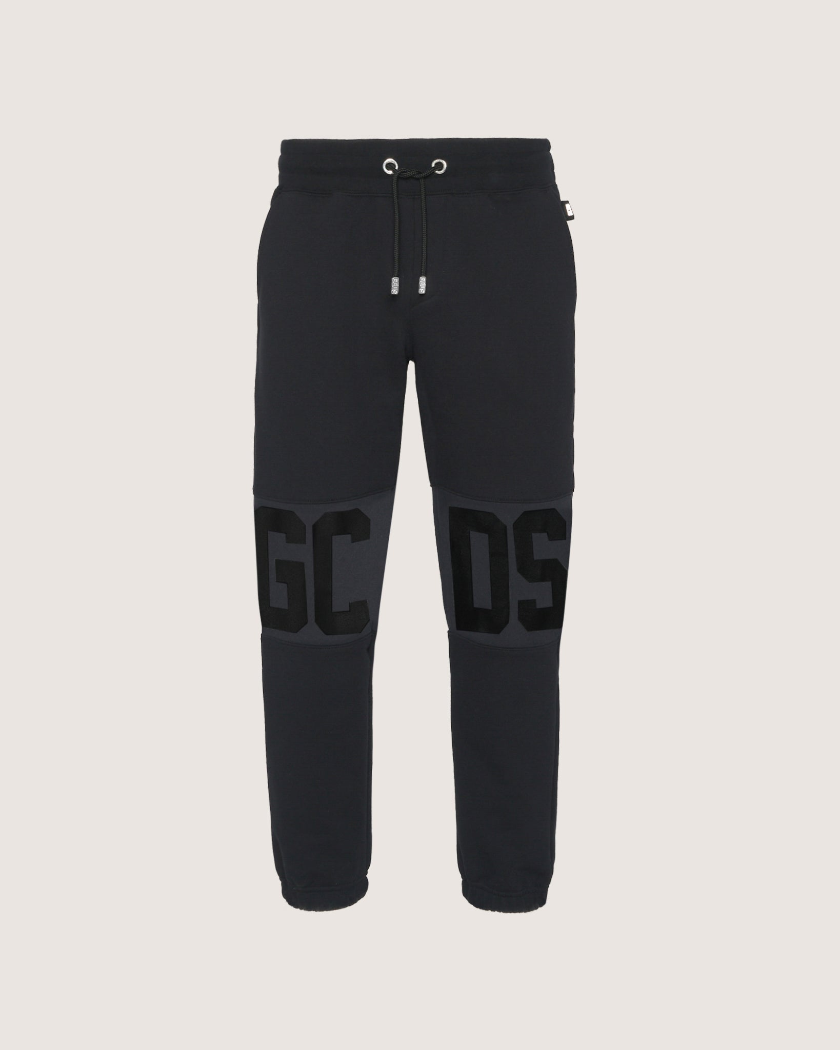 Cotton GCDS sweatpants with tone-on-tone inlaid logo band at knee height at front and back. Slash pockets, elastic waistband and leg bottoms. Regular fit, tapered leg cut.