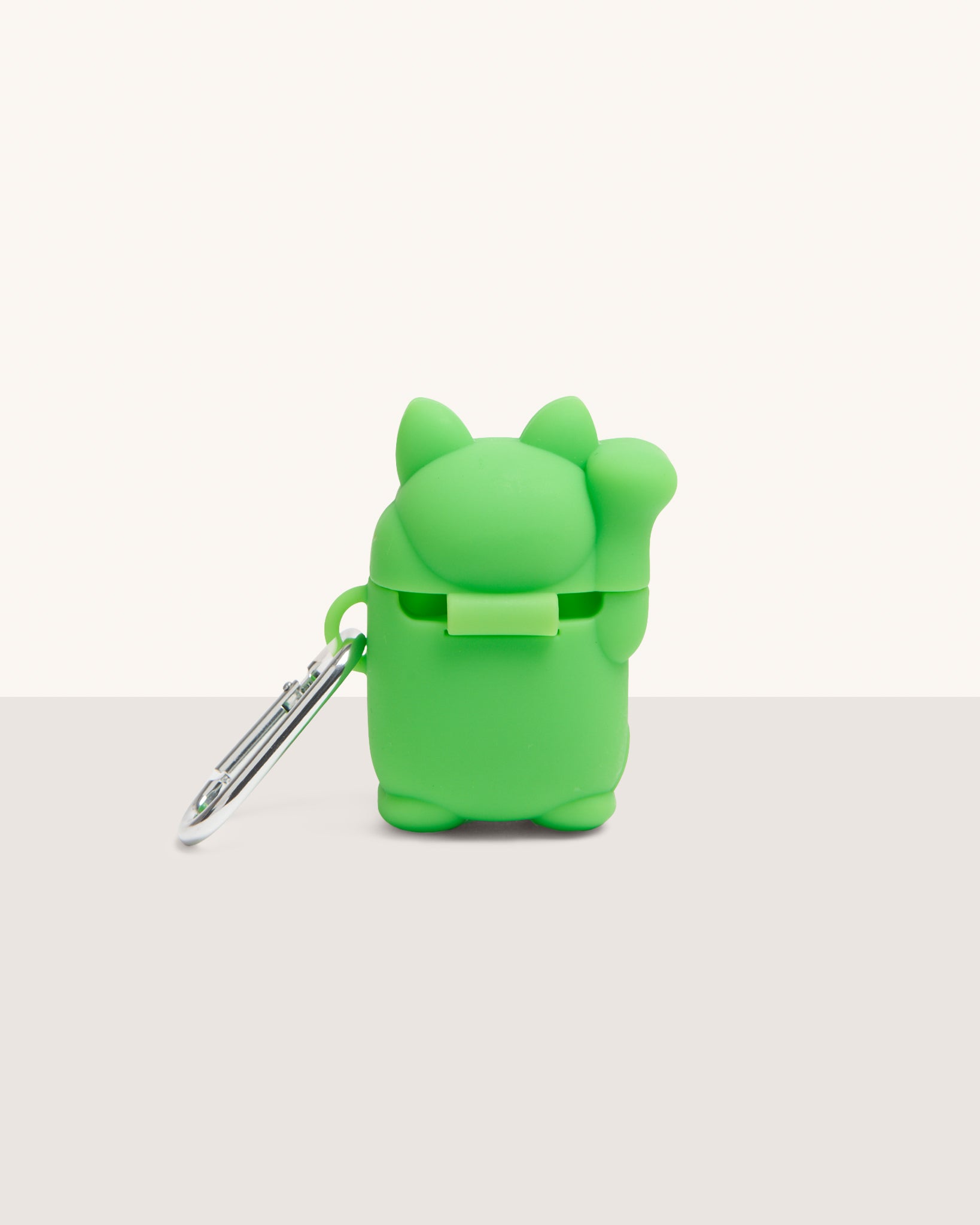 Cat-shaped earphone case with front logo and hook. Compatible with airpods.