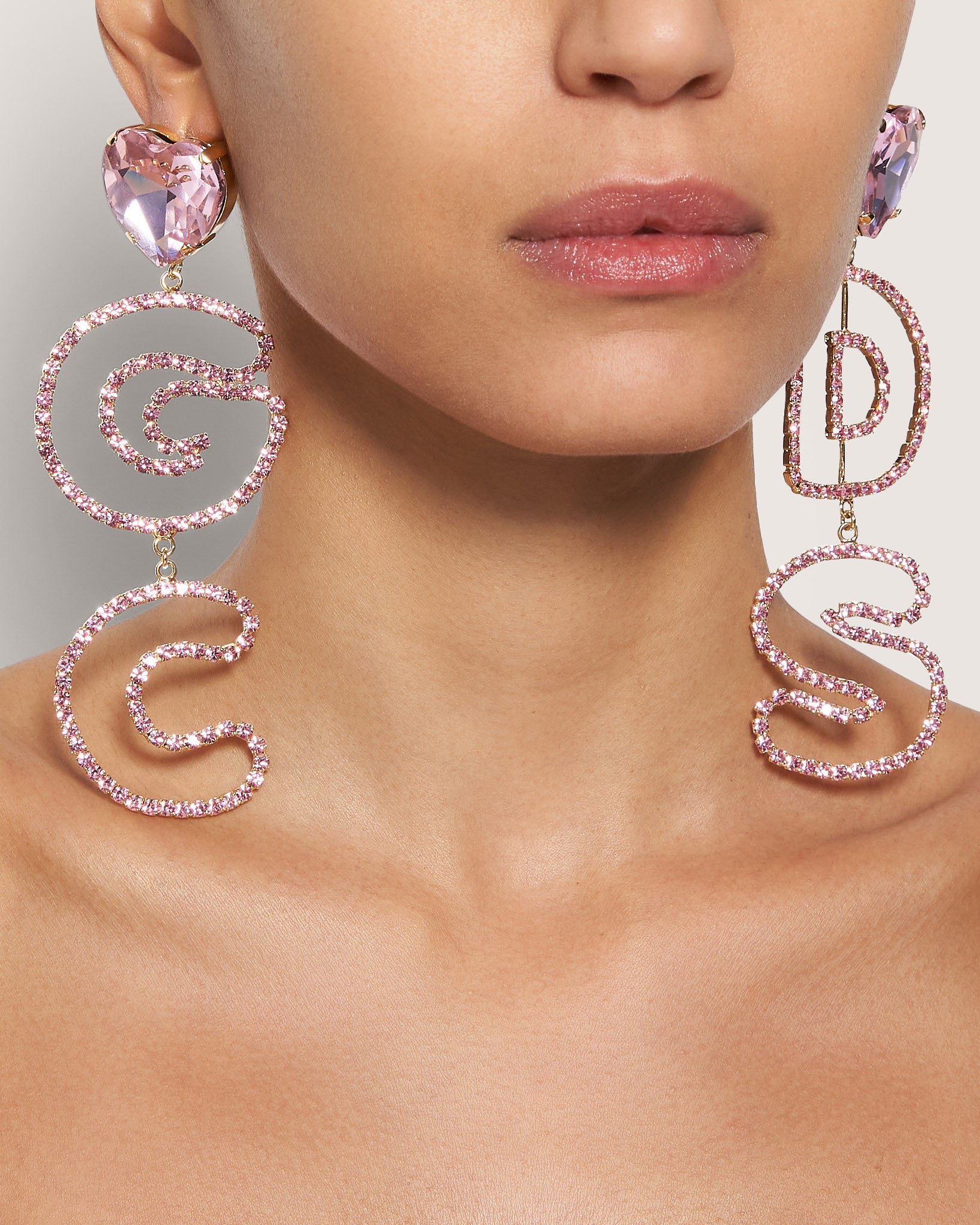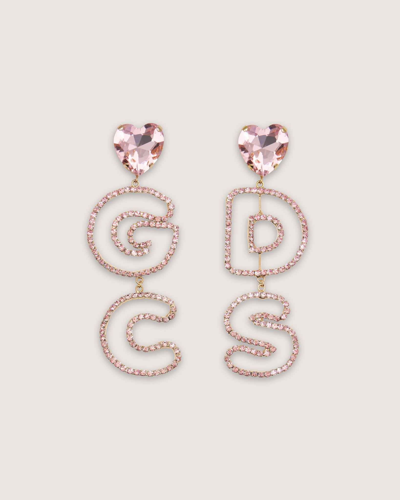 Maxi GCDS earrings with Preciosa crystal heart and GCDS Cute logo.