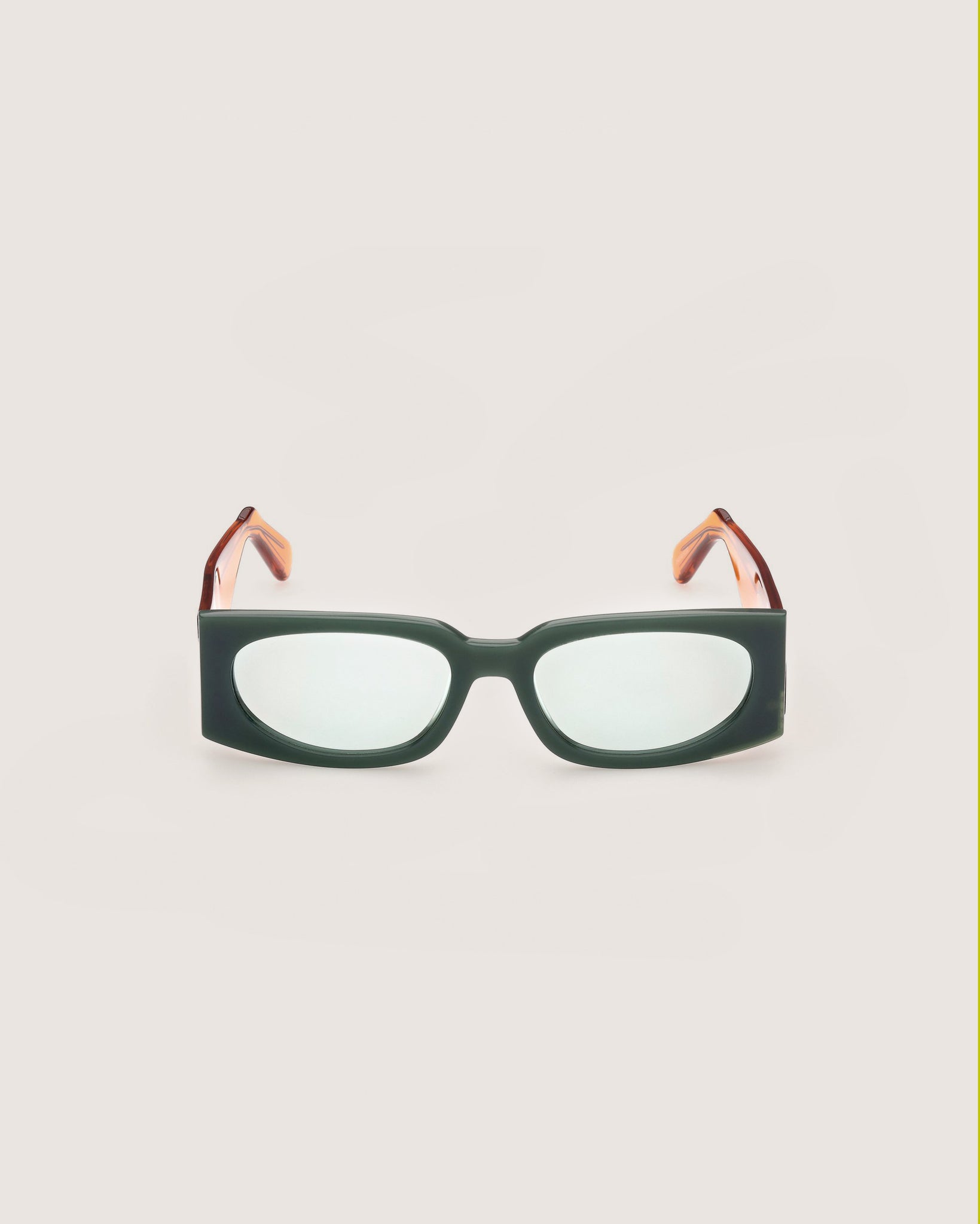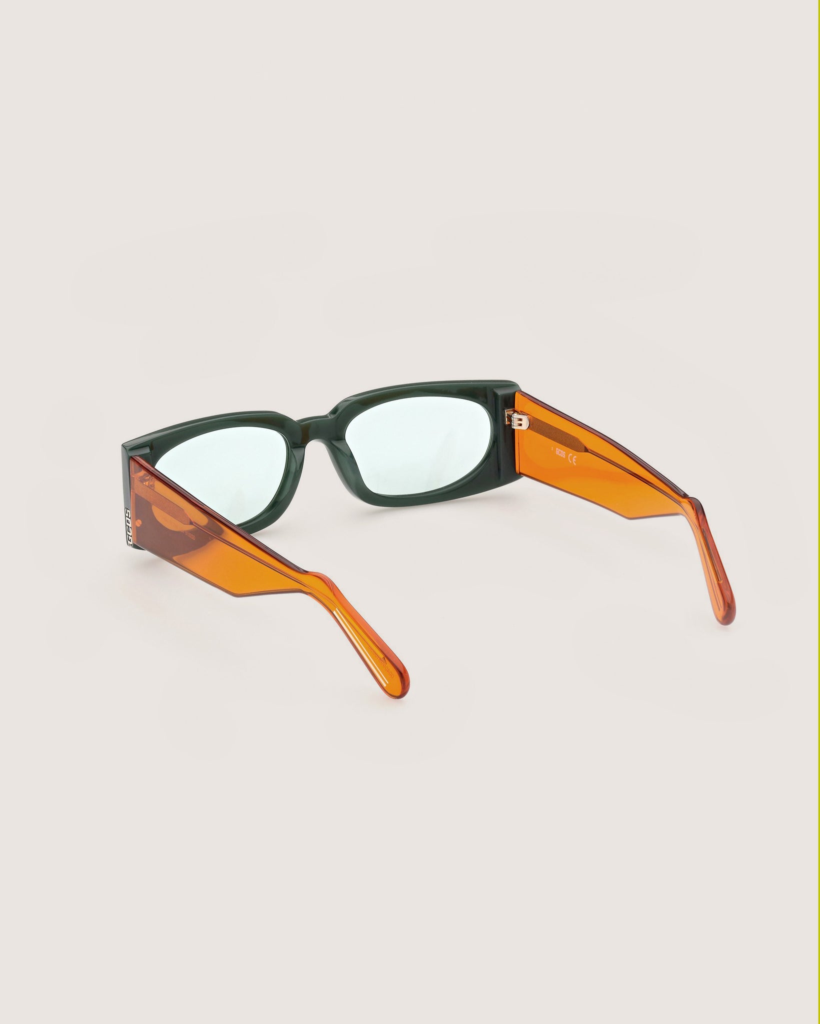 An elegant rectangular construction that conveys a distinctive style. The acetate frame bears the GCDS metal logo on the lateral profile.