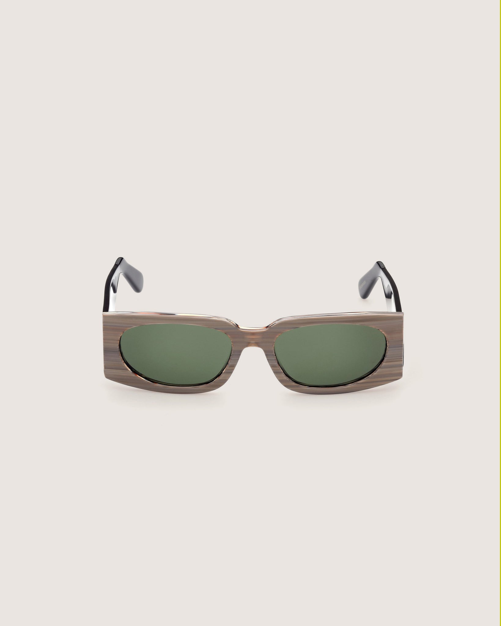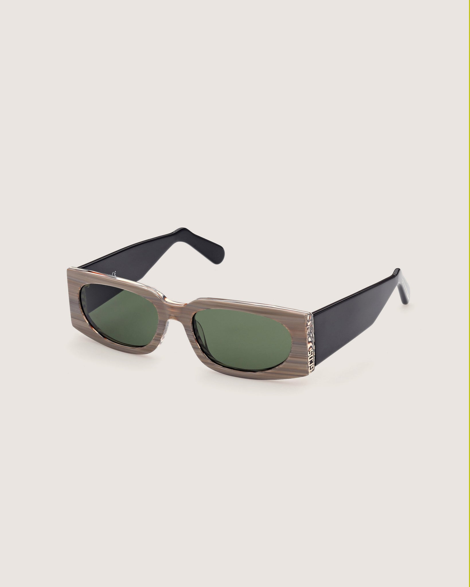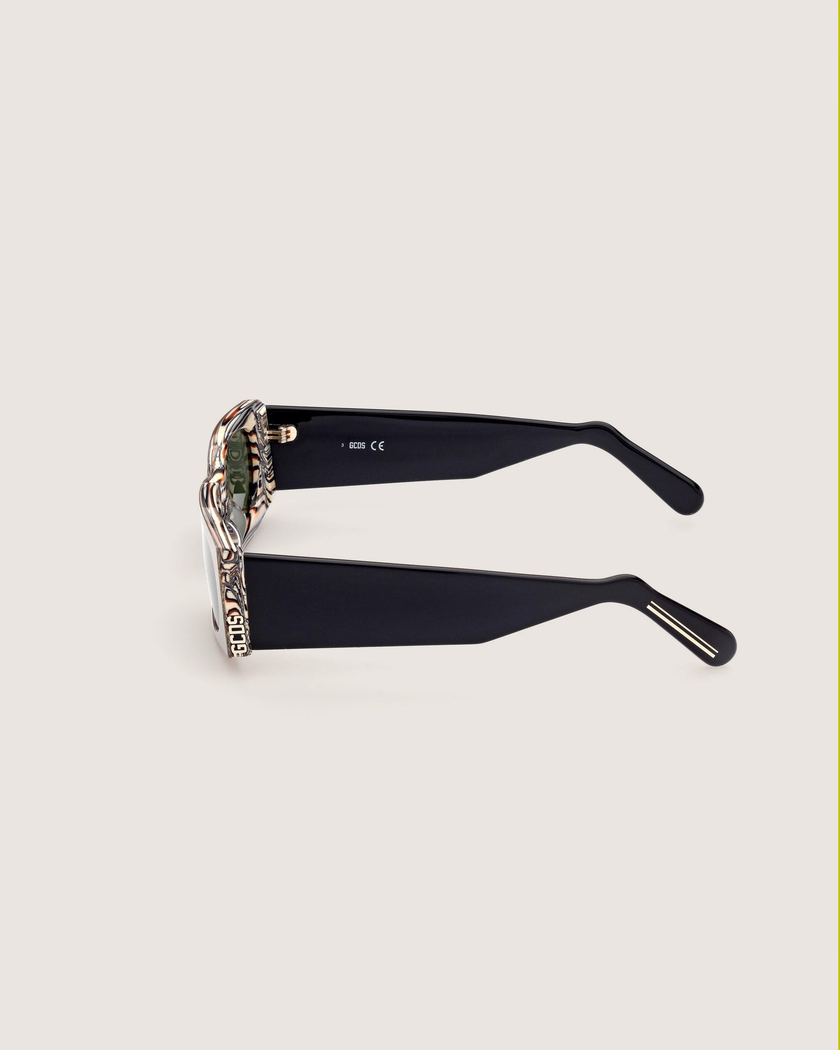 An elegant rectangular construction that conveys a distinctive style. The acetate frame bears the GCDS metal logo on the lateral profile.