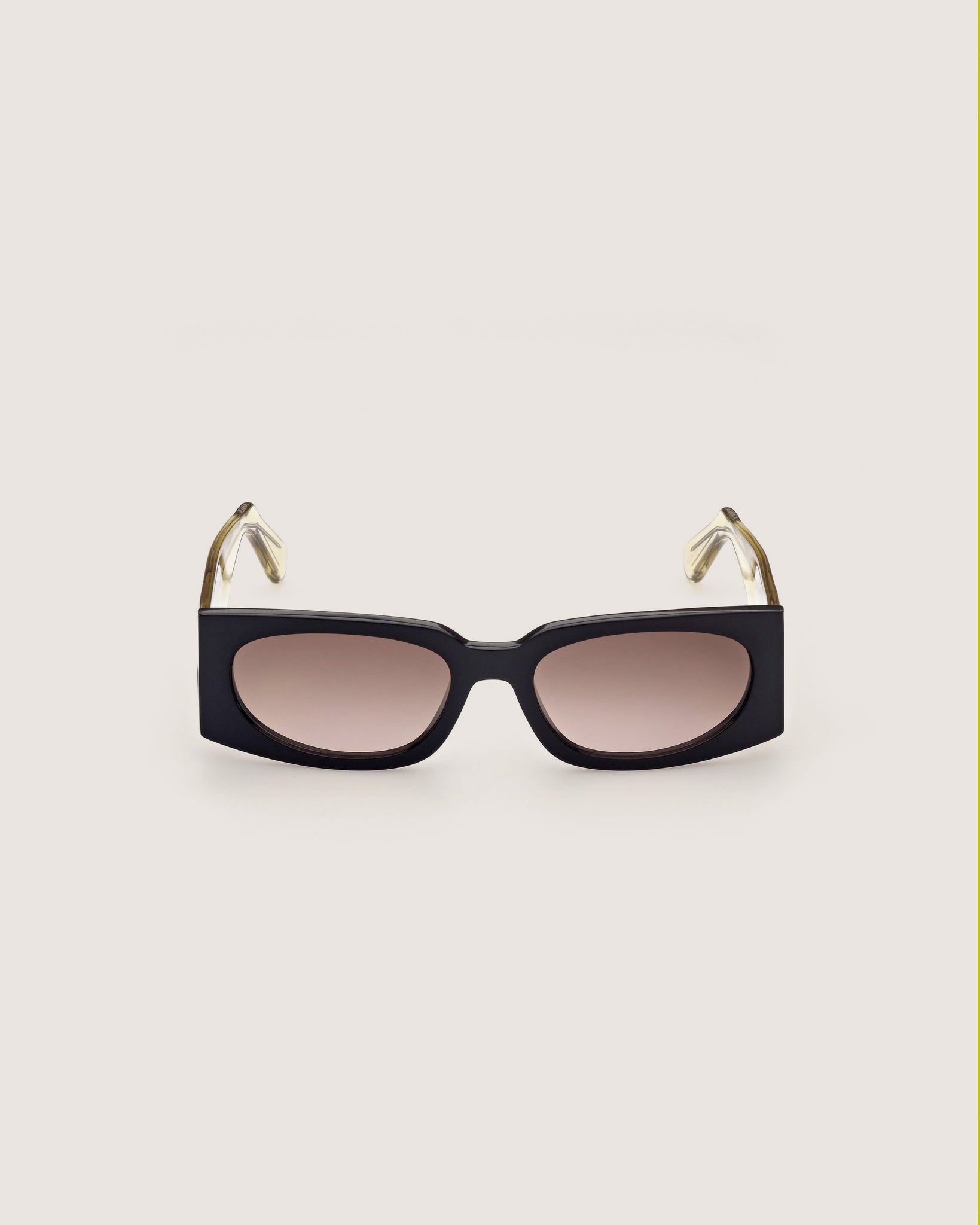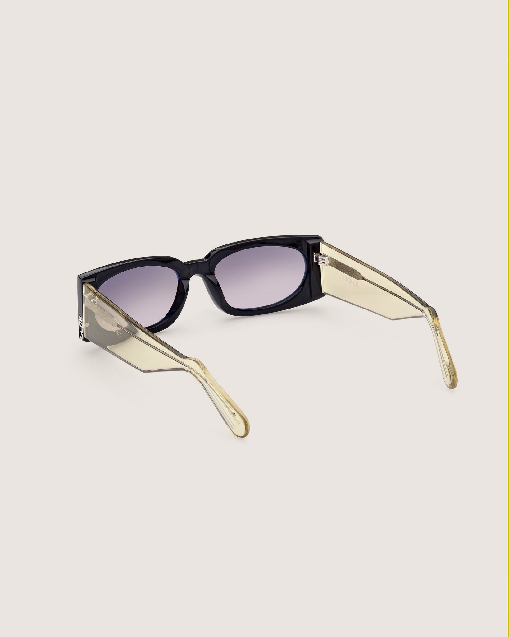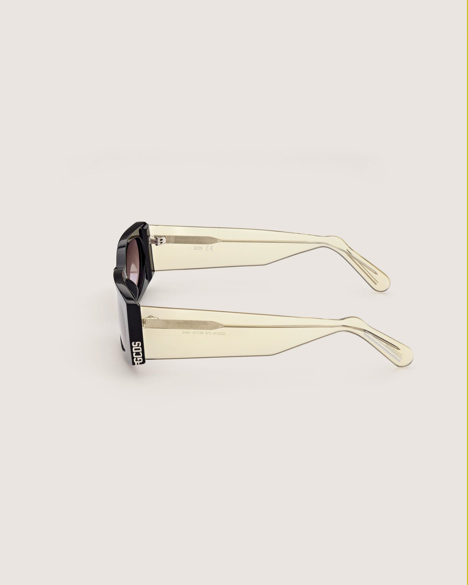 An elegant rectangular construction that conveys a distinctive style. The acetate frame bears the GCDS metal logo on the lateral profile.