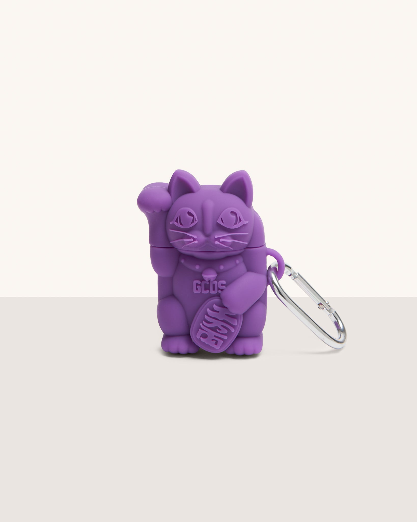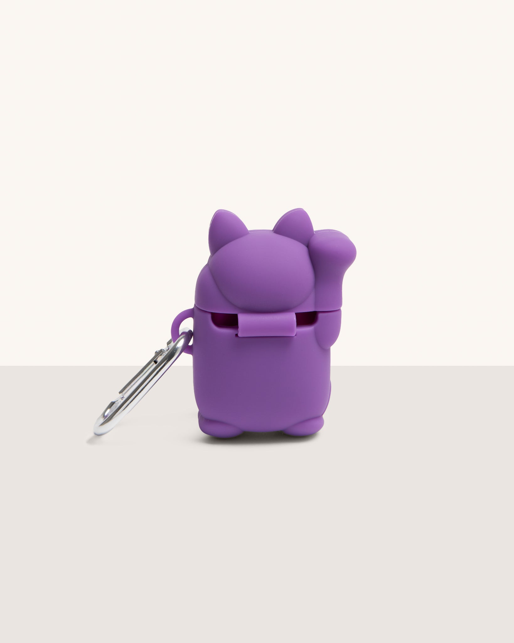 Cat-shaped earphone case with front logo and hook. Compatible with Apple AirPods 1 & 2.