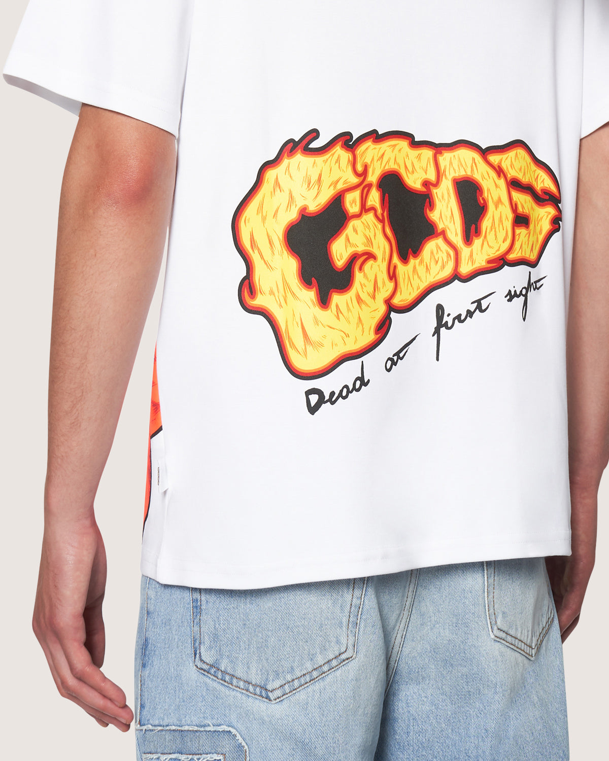Regular cotton T-shirt with Daisy print placed on front.