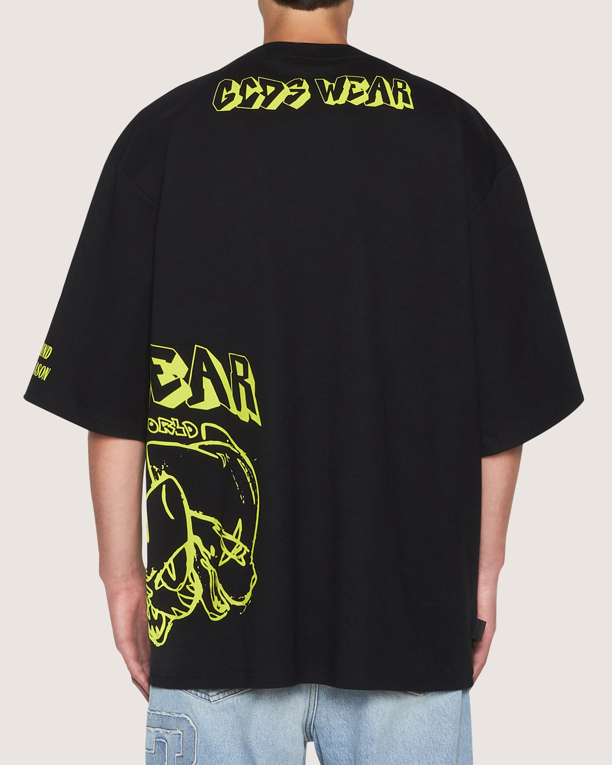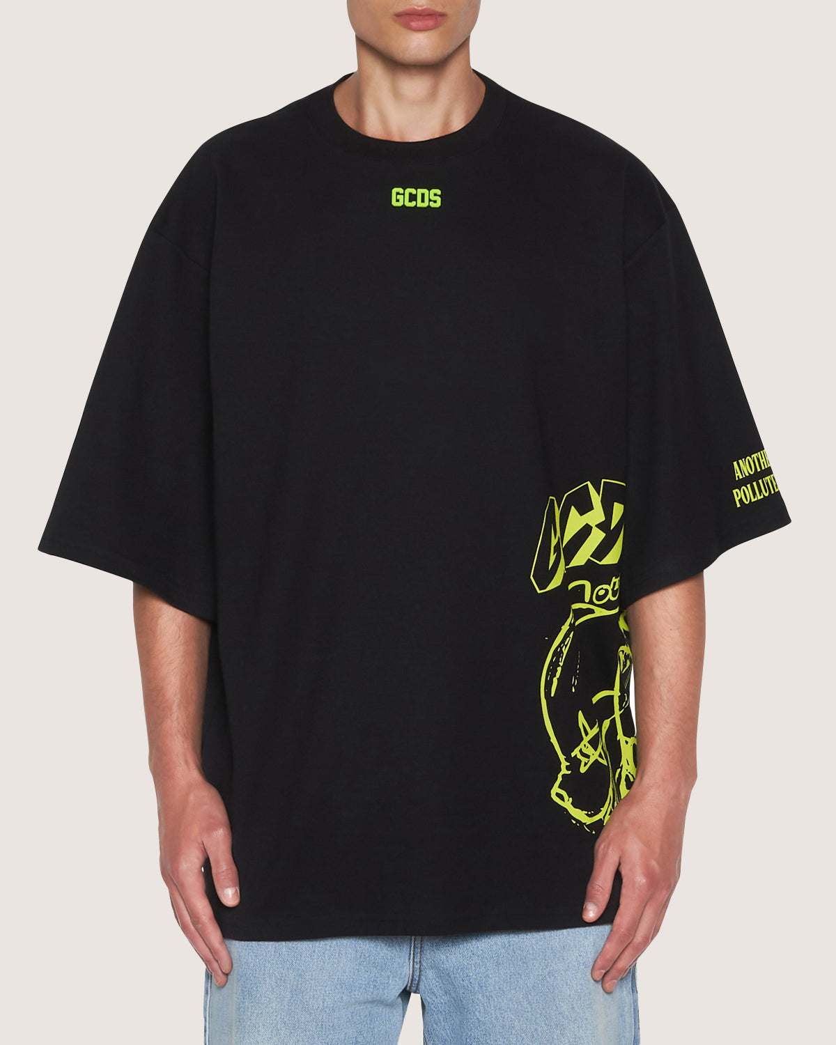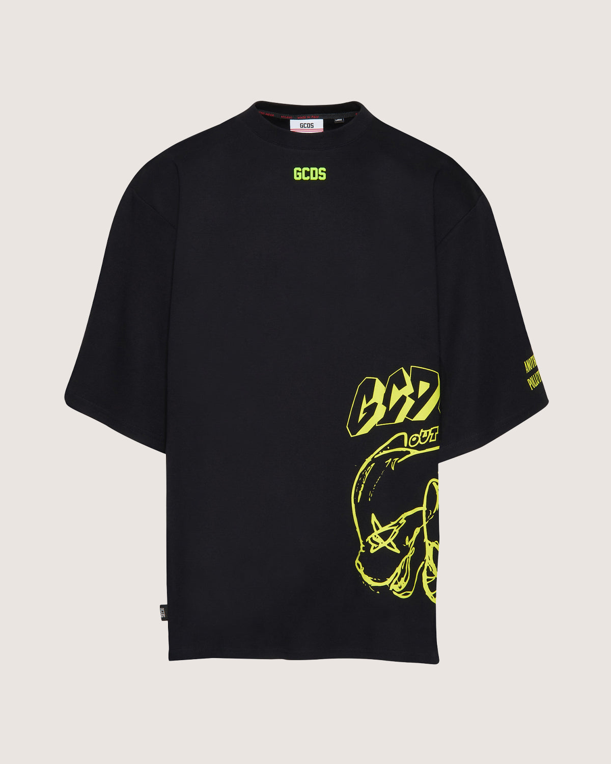 Oversized cotton T-shirt with placed bad cat print and GCDS logo patch on front.