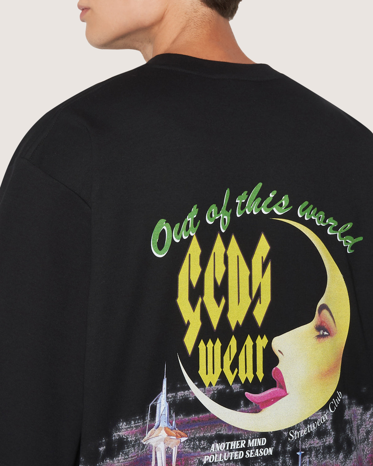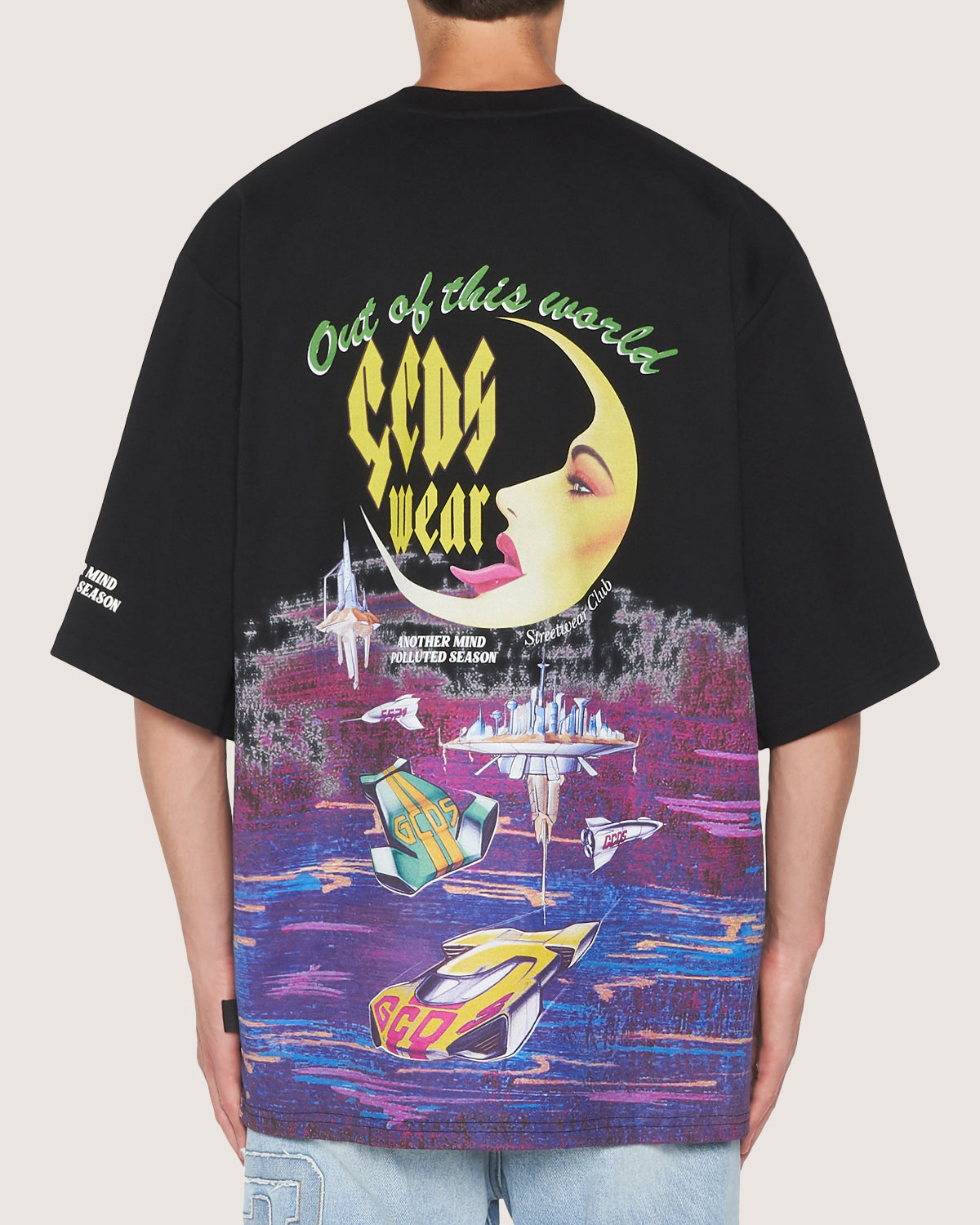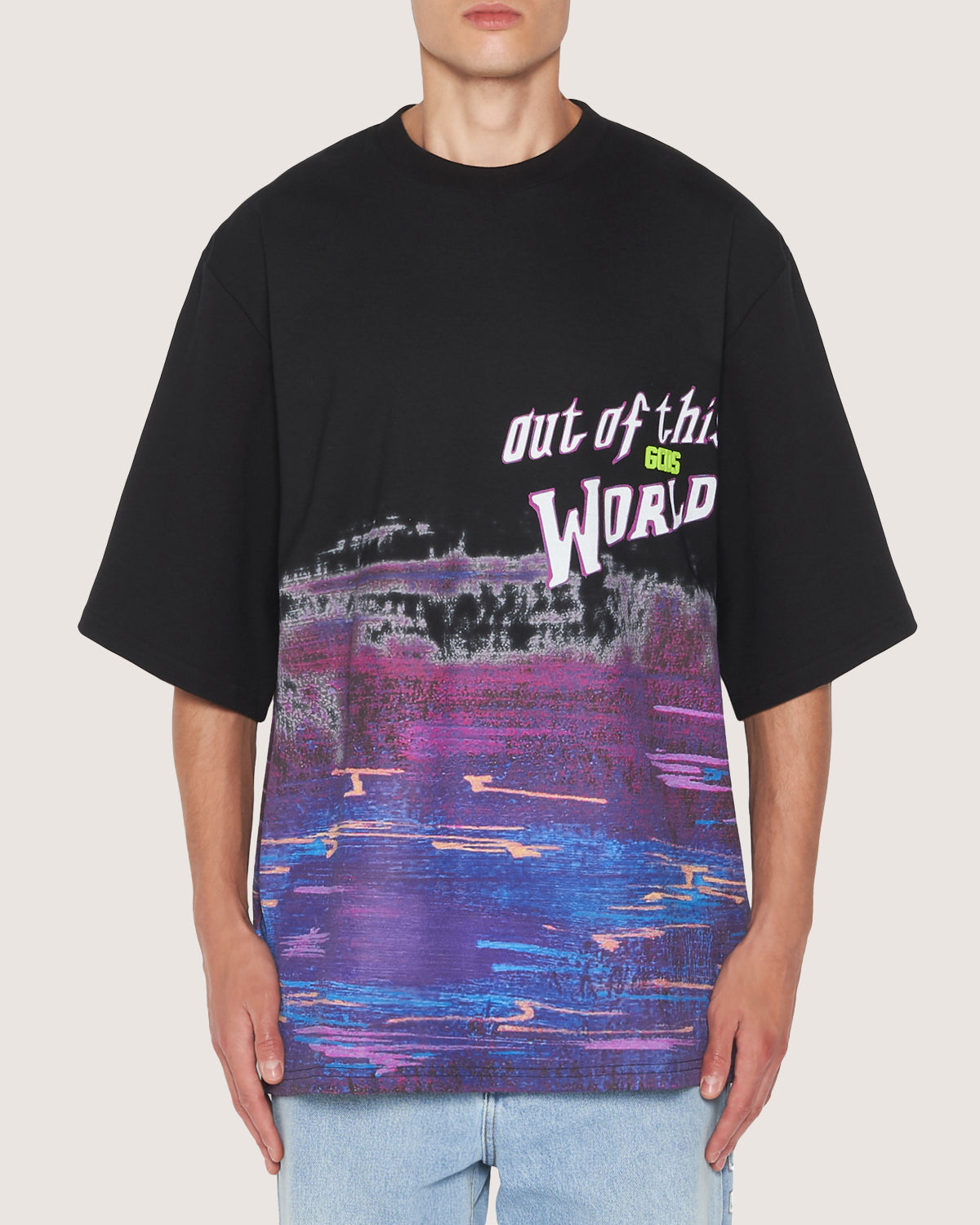 Oversized cotton T-shirt with Out of this World prints on front and back.