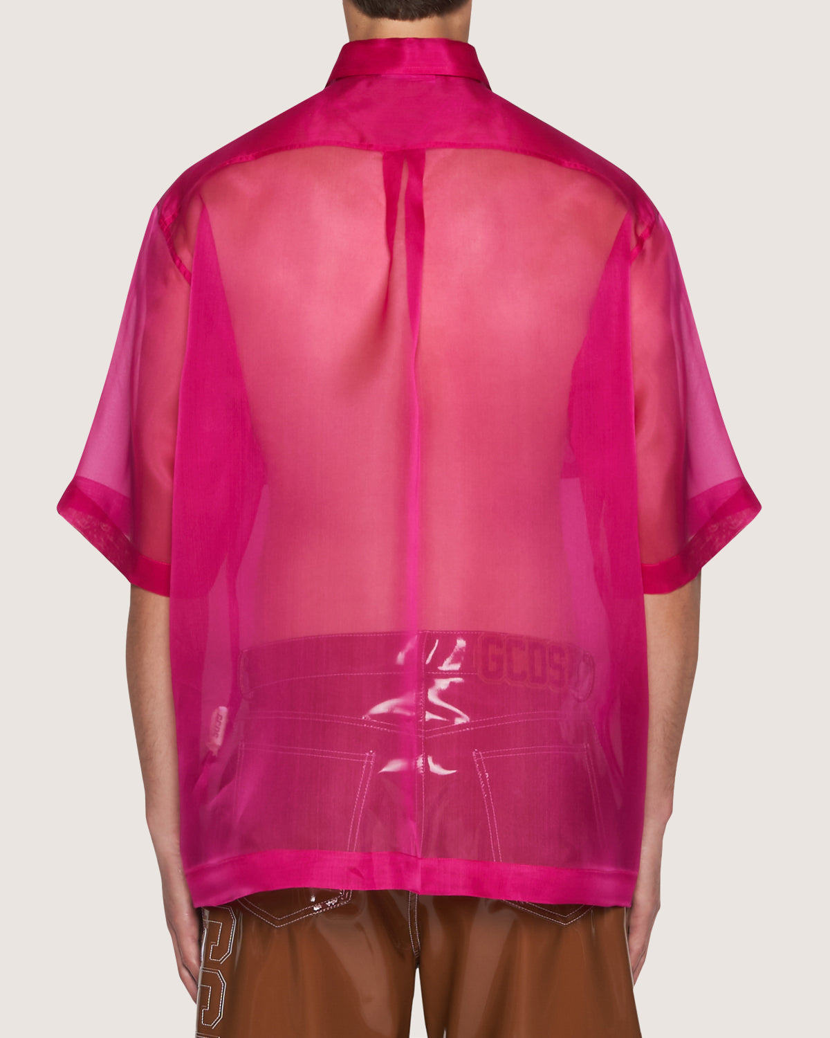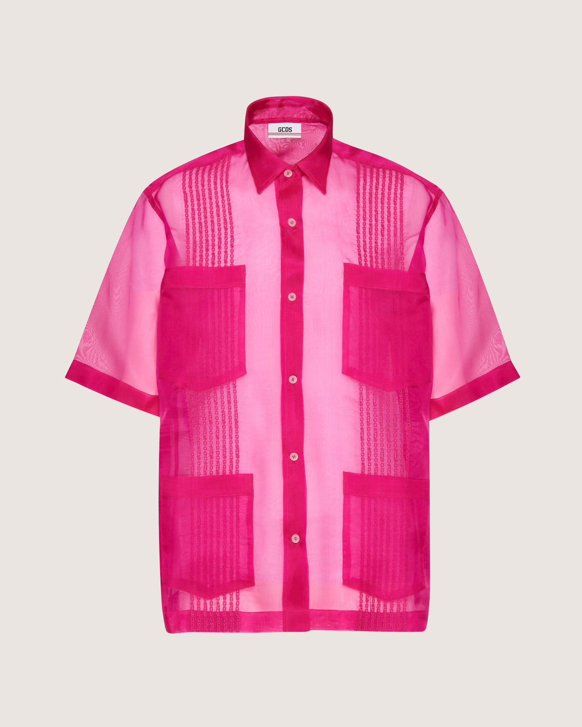Short sleeve organza shirt with GCDS chain embroidery on the front.