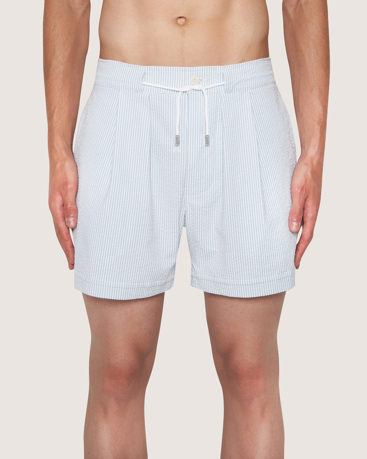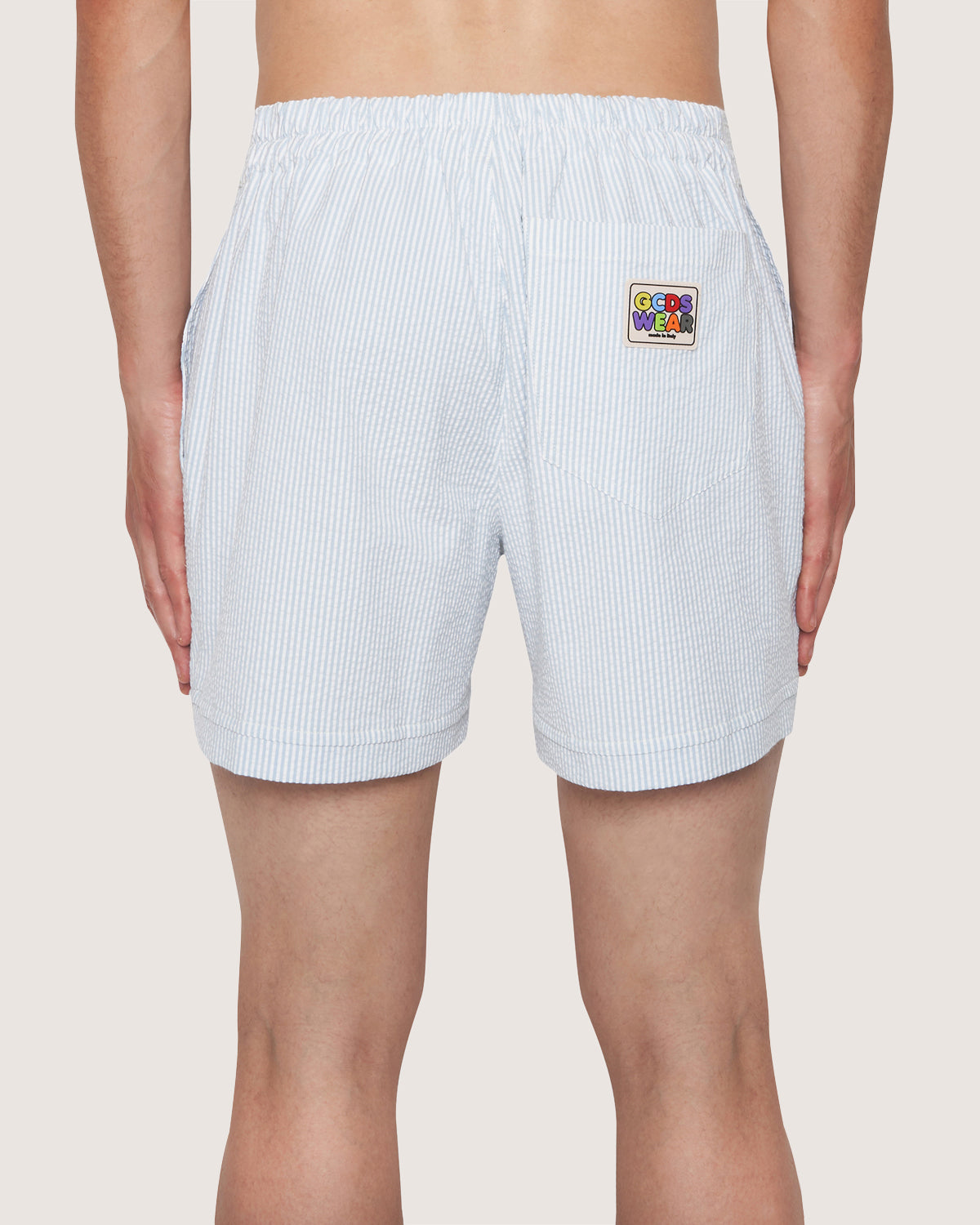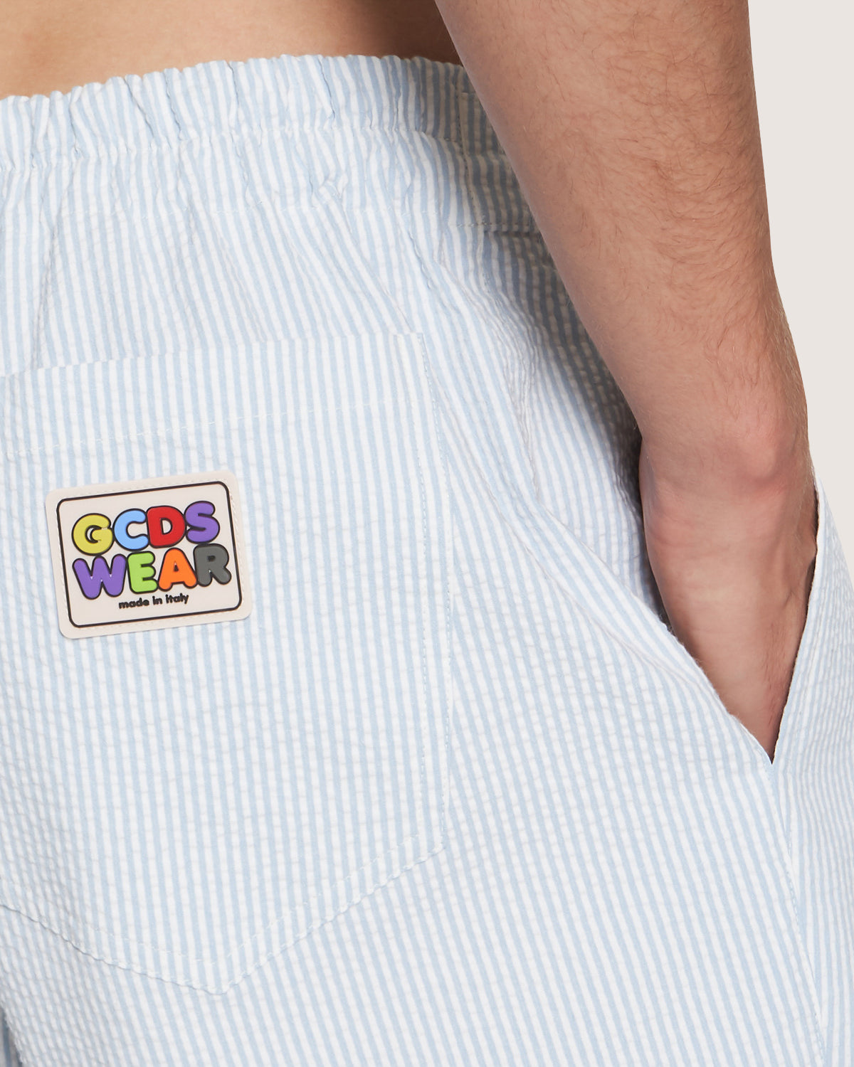 Seersucker boxer shorts with GCDS logo patch applied on the front.