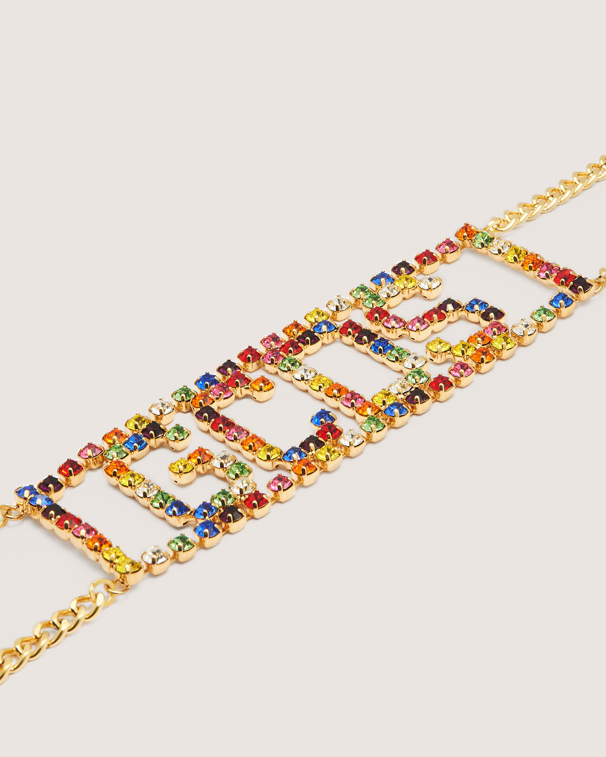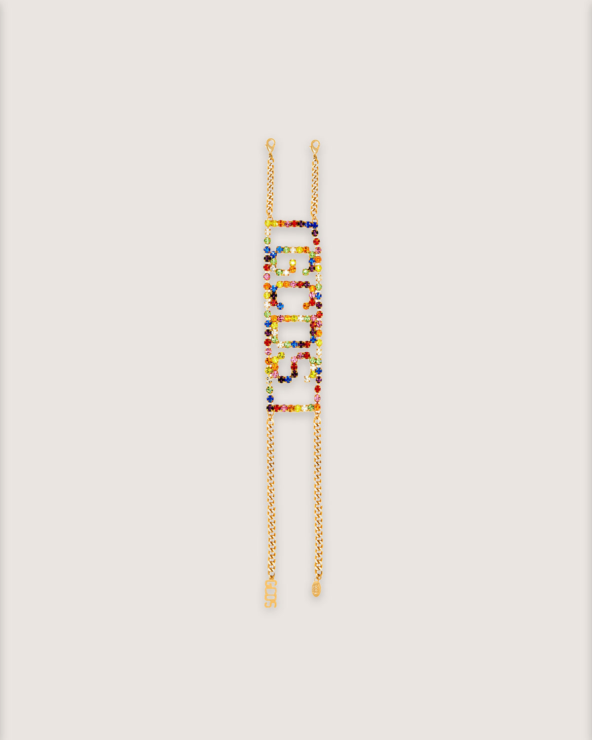 Necklace entirely illuminated by Preciosa rhinestones with GCDS logo motif. Lobster clasp with adjustable chain and logo medallion.