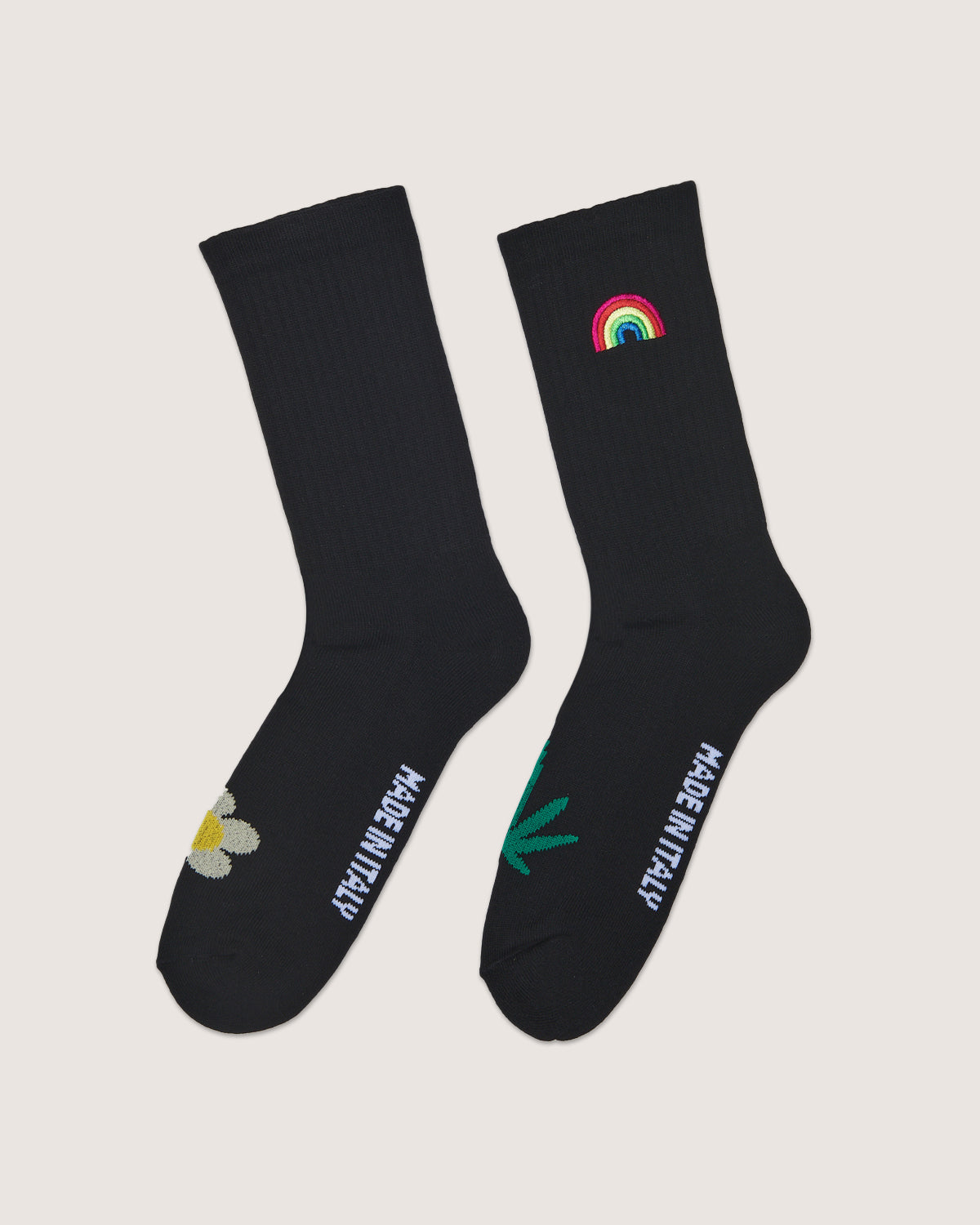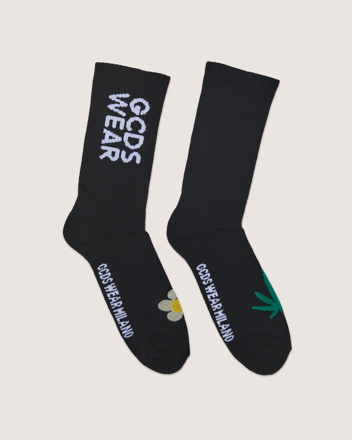 Cotton blend socks with GCDS Cute logo and mix of embroidered symbols.
