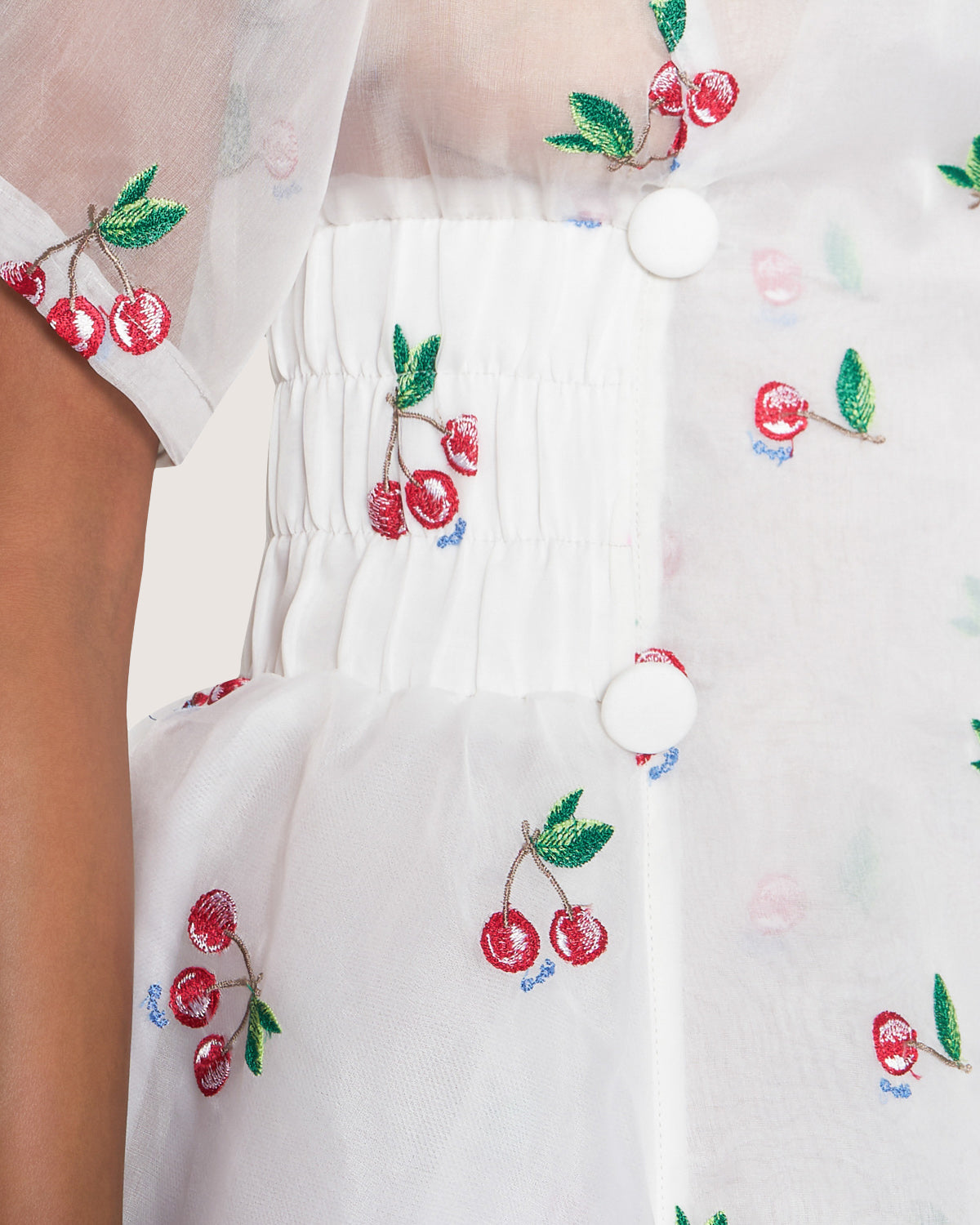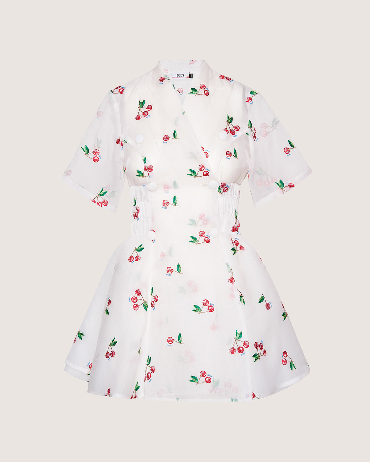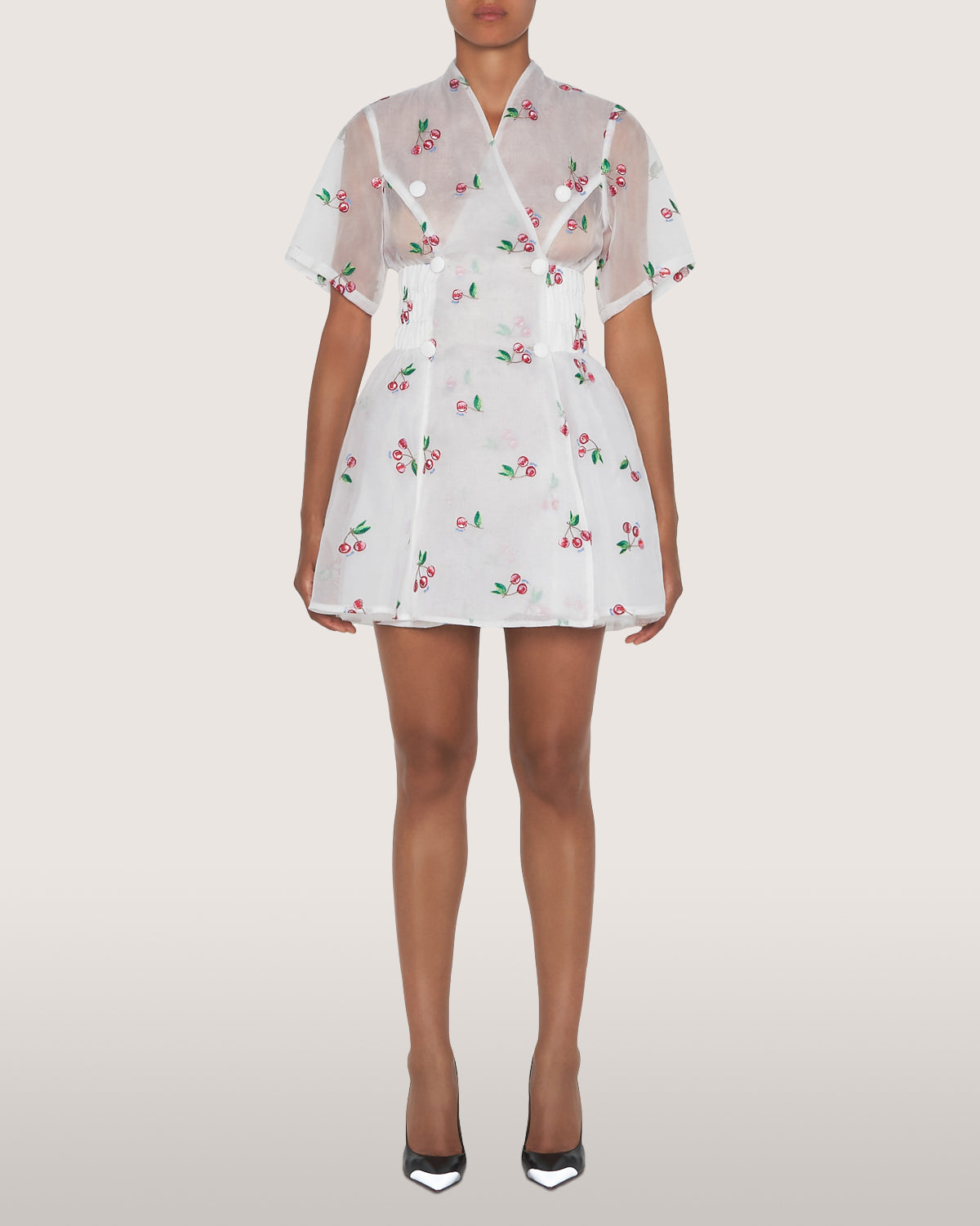 Mini dress in sequins with tie dye effect print. Asymmetrical neckline with contrasting border. Adjustable drawstring on right side. Invisible zipper on side.