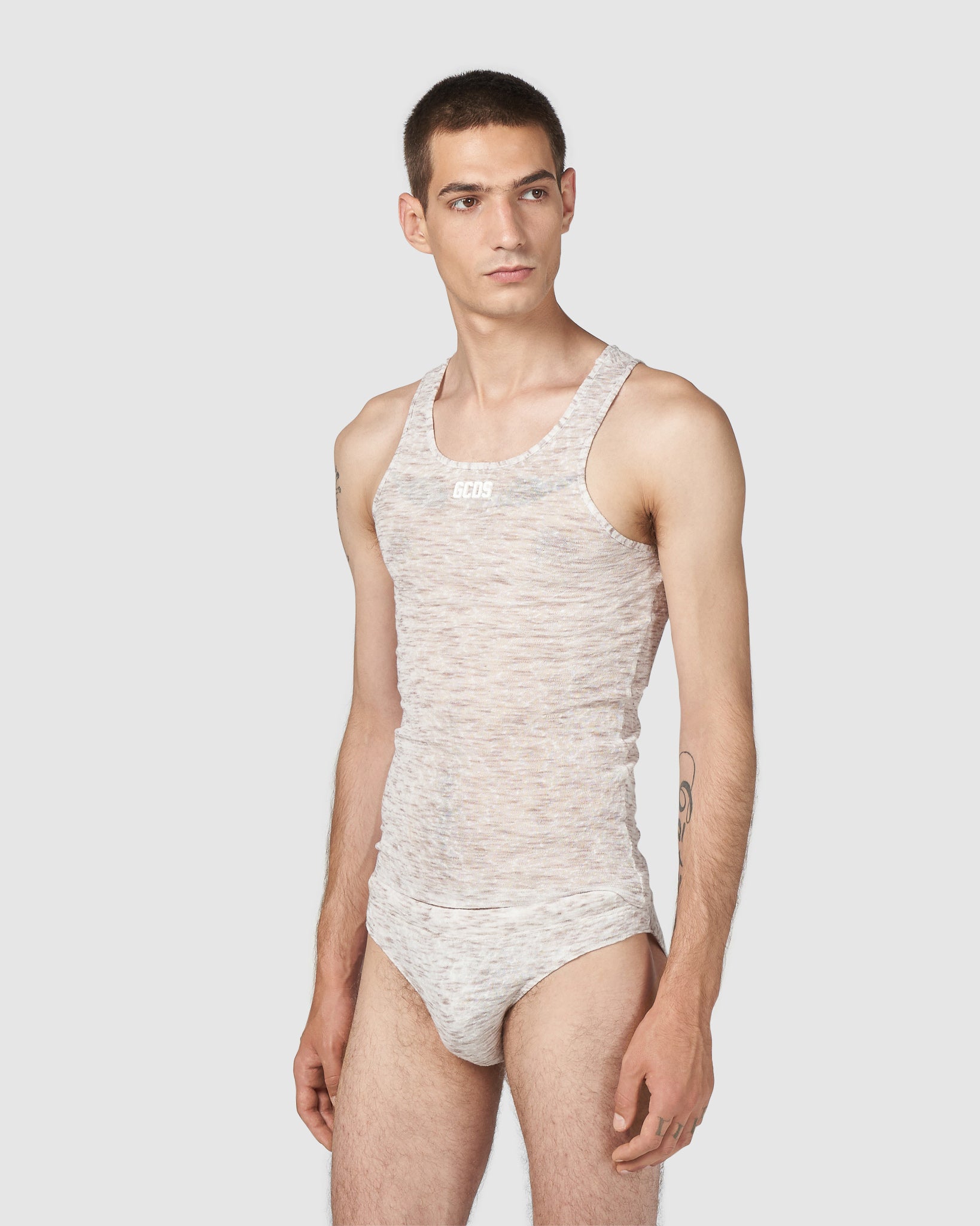 GCDS underpants, semi-transparent slub jersey. Silicone logo patch on the back on the right. Inside cord tie.